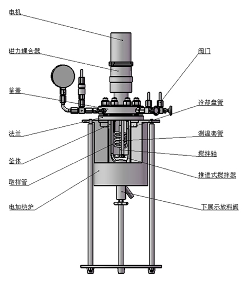 該結(jié)構(gòu)為端面磁力密封裝置,依靠?jī)蓧K強(qiáng)力磁鋼異極相吸的原理通過磁場(chǎng)穿透密封罩體來(lái)實(shí)現(xiàn)力矩的無(wú)接觸式傳遞,由于電機(jī)直接帶動(dòng)攪拌器,故而其攪拌特點(diǎn)是低轉(zhuǎn)矩高轉(zhuǎn)速(≤1500r/min),適合攪拌低粘度(cp≤2000mpa.s)或固體顆粒物含量較少的反應(yīng)物料介質(zhì)體系。